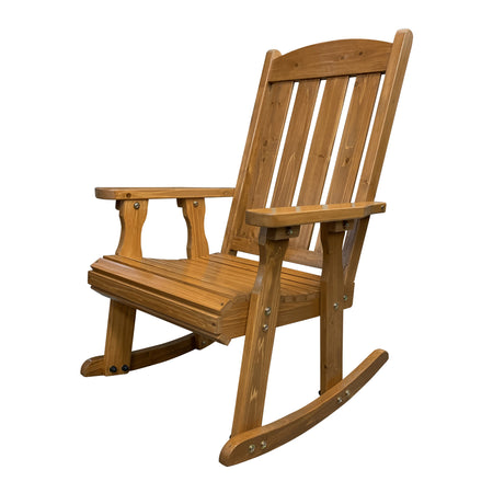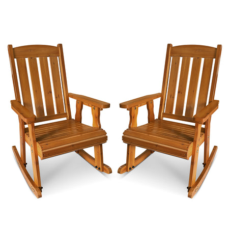 Wooden Patio Rocking Chair with Comfortable Backrest Inclination, High Backrest and Deep Contoured Seat, Solid Fir Wood, Heavy Duty 600 LBS, for Both Outdoor and Indoor (Brown - 3 Pieces)