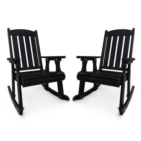 Wooden Patio Rocking Chair with Comfortable Backrest Inclination, High Backrest and Deep Contoured Seat, Solid Fir Wood, Heavy Duty 600 LBS, for Both Outdoor and Indoor (Black - 3 Pieces)