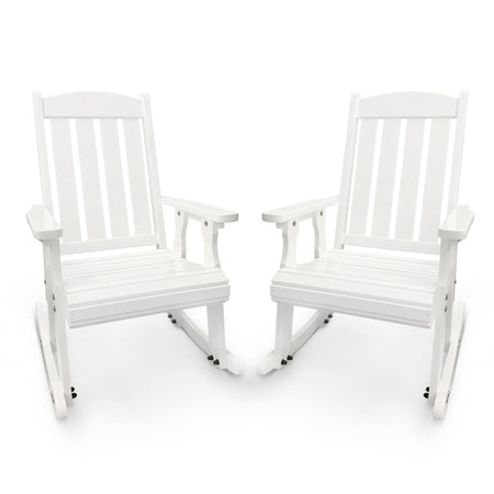 Wooden Patio Rocking Chair with Comfortable Backrest Inclination, High Backrest and Deep Contoured Seat, Solid Fir Wood, Heavy Duty 600 LBS, for Both Outdoor and Indoor (White - 3 Pieces)