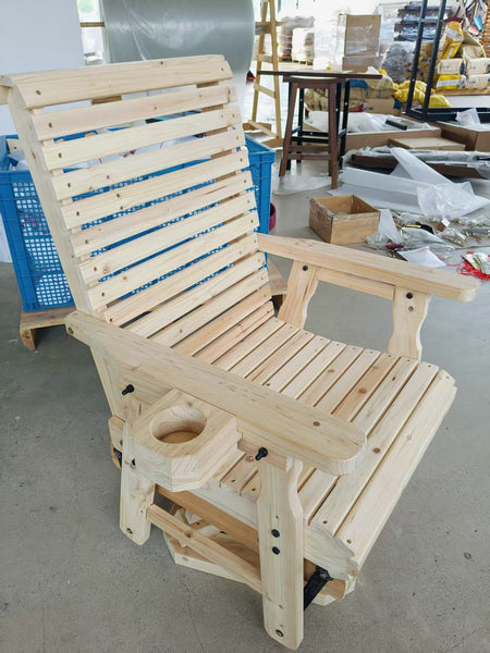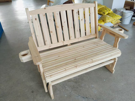 Wooden Patio Glider with Cup Holders, for Two Person with cup holder