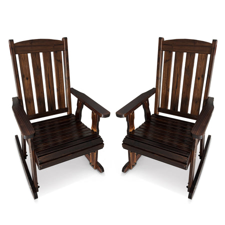 Wooden Patio Rocking Chair with Comfortable Backrest Inclination, High Backrest and Deep Contoured Seat, Solid Fir Wood, Heavy Duty 600 LBS, for Both Outdoor and Indoor (Deep Brown - 3 Pieces)