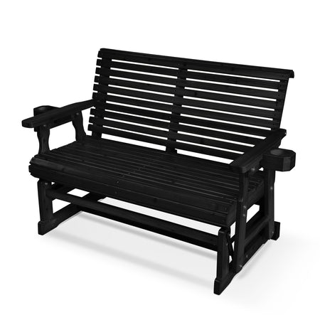 Wooden Patio Glider with Cup Holders, High Roll Back and Deep Contoured Seat, Heavy Duty 800 Lb (Black, 3-Seater)