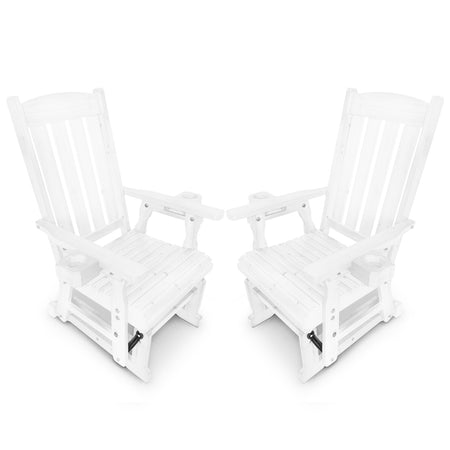 Wooden Patio Glider with Cup Holders, High Roll Back and Deep Contoured Seat, Heavy Duty 800 Lb (White, 3-Seater)