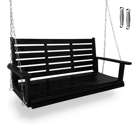 Wooden Porch Swing, Ergonomic Seat, Bench Swing with Hanging Chains and 7mm Springs, Heavy Duty 800 LBS, for Outdoor Patio Garden Yard (Black, 2-Seater Extra Large)