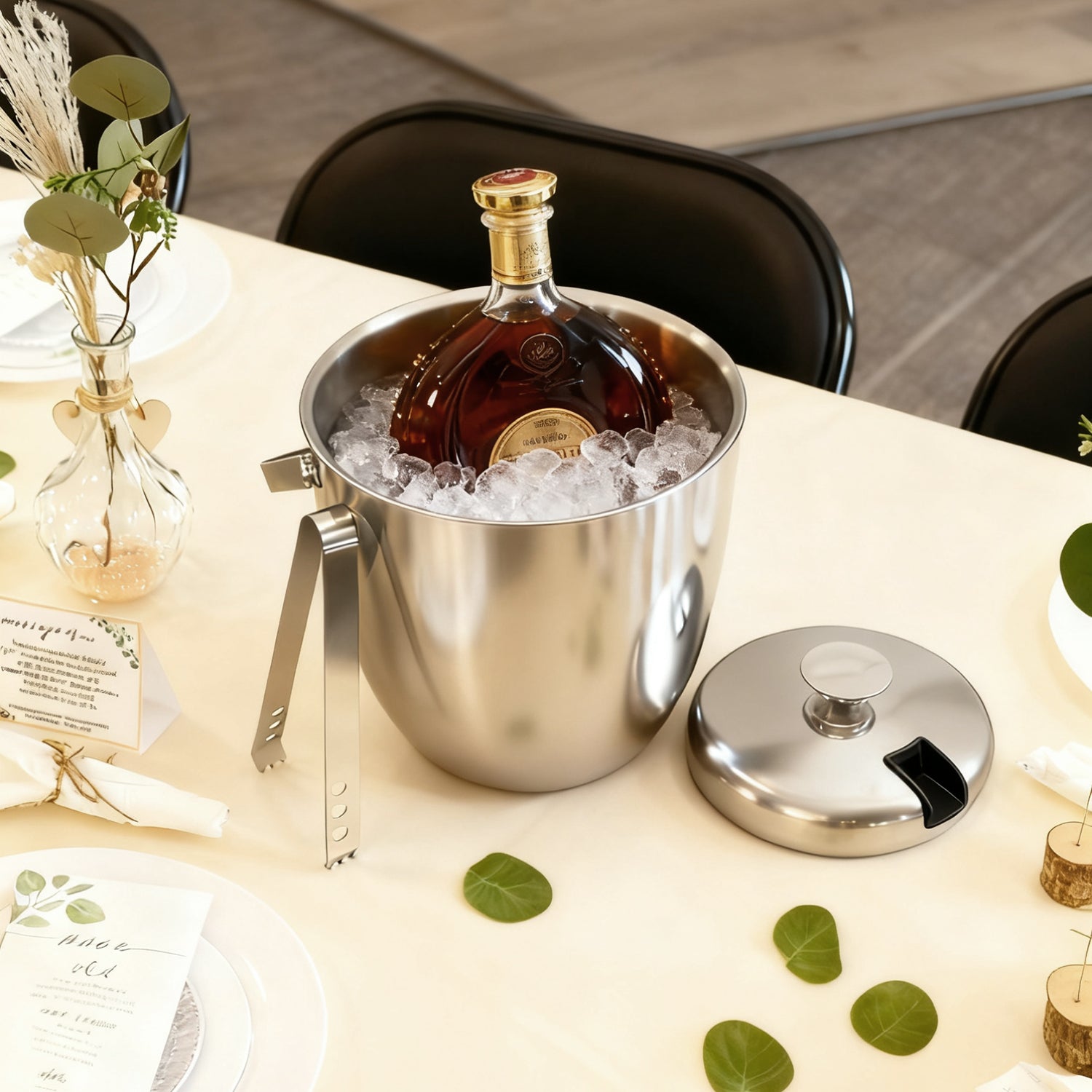 ๐๐จ๐ฆ๐ฉ๐ฅ๐๐ญ๐ ๐๐๐ญ ๐๐ง๐๐ฅ๐ฎ๐๐๐ โ Comes with a matching stainless steel lid and ice tongsโeverything you need for effortless entertaining.